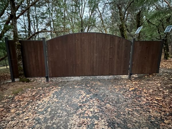 Our most popular style of gate starting here with a single top with nice arch and pickets included with two 4x4 posts and USAutomatic Ranger system. any other options cost extra. Solar and side panels not included at base price. Any other customizations, changes or additions are at additional cost.