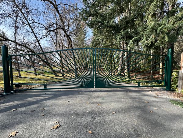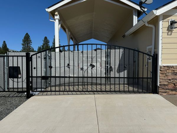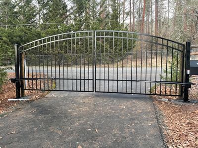 This is our very basic gate system. This class of gate is only slightly customizable. Built for your driveway using 1 1/4" square tube. Mounted on 3x3 posts and approximately 4ft tall. Automated with a Ghost Automation system.